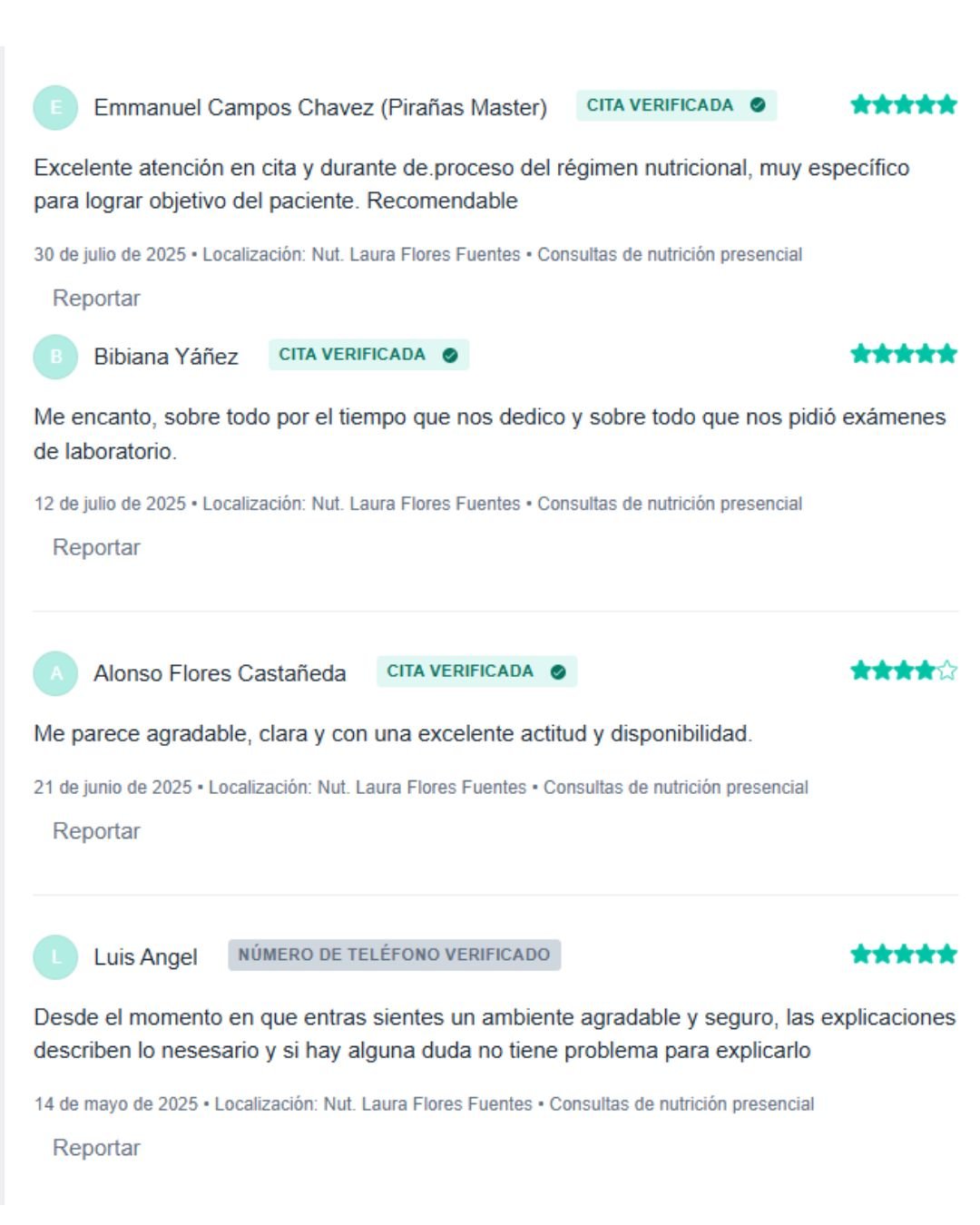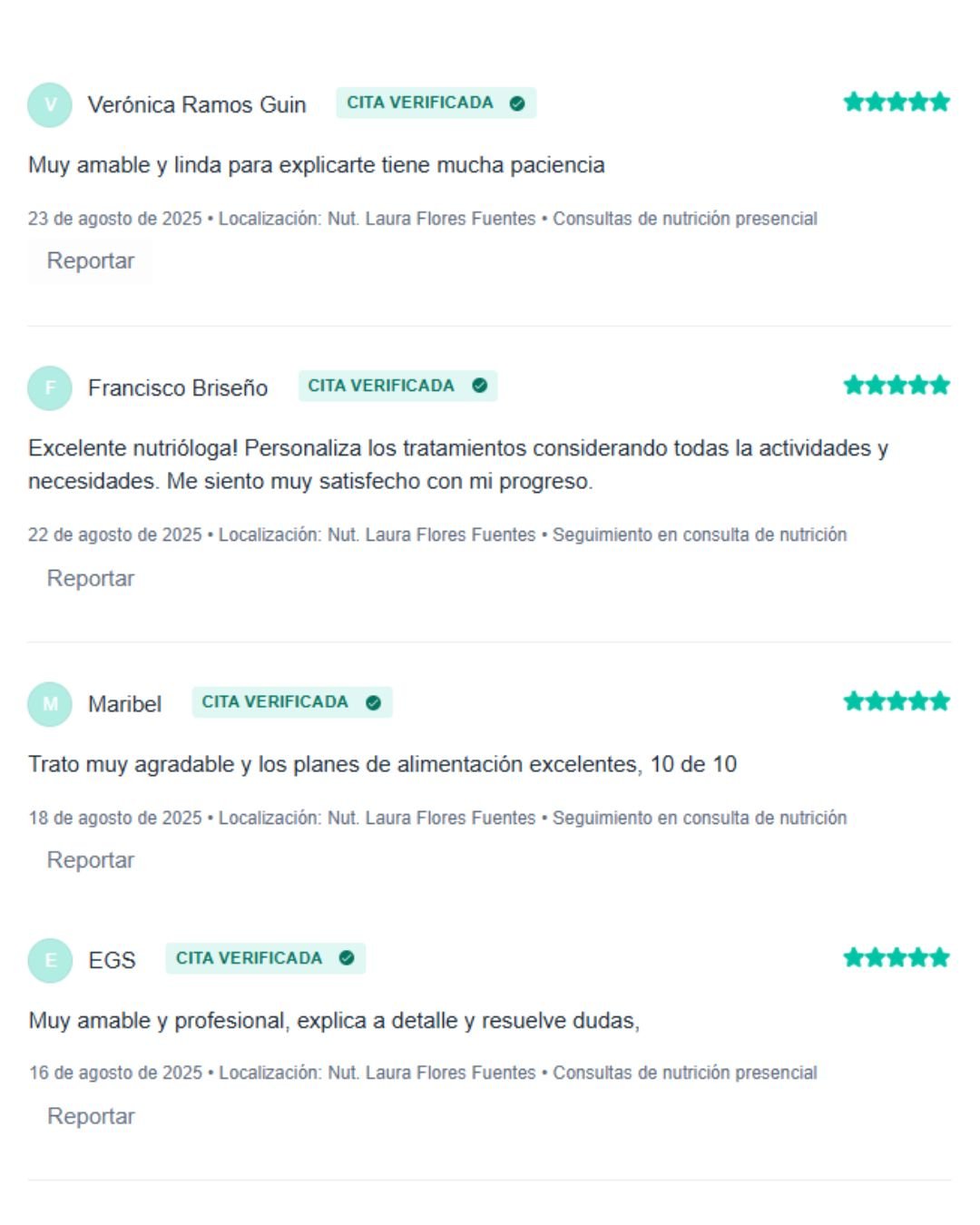 Consulta de nutrición personalizada con la Lic. Laura Flores.